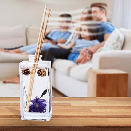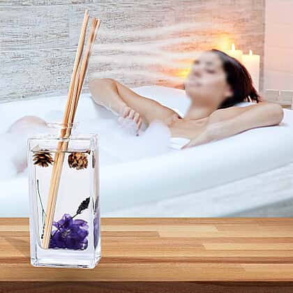 135ml Refillable Glass Bottle Oil Diffuser with Dry Flower and Reed Sticks (Size 7.5x24.5x10 Cm) - LIME BASIL & MANDRIN