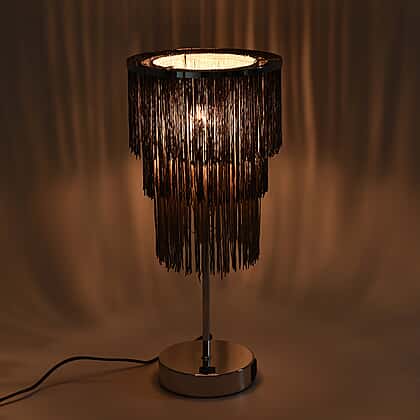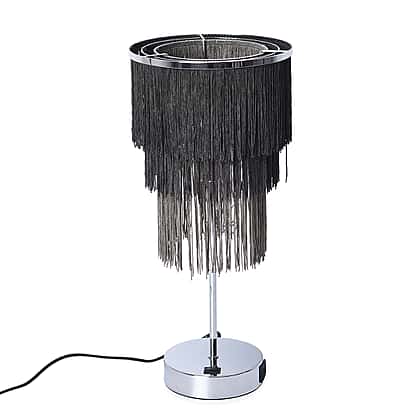 3 Layer Tassel Table Lamp with Two USB Port (H-42 Cm) - Black