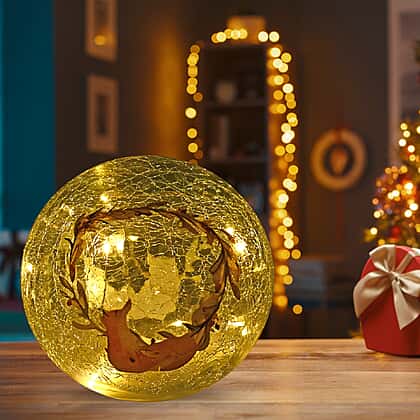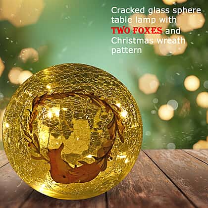 Cracked Glass Sphere Table Lamp with Foxes & Christmas Wreath Pattern (Size 15x15x14 Cm) - Multi