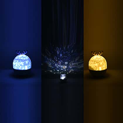 Cute Deer Shaped Multi Colour Light Projection Lamp with Remote Control & USB Cable (Size 11x11x15cm) - White