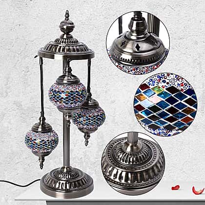 Handmade 3 Ball Turkish Mosaic Crystal Studded Table Lamp (Size 21x68 Cm) - Blue, Red and Multi