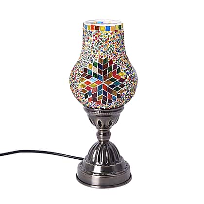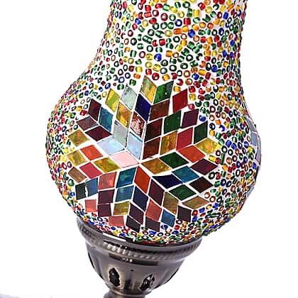 Handmade Turkish Brights Multi Colour Glass Mosaic Table Lamp with Bronze Base (Size 28x10cm)
