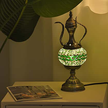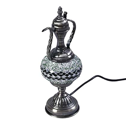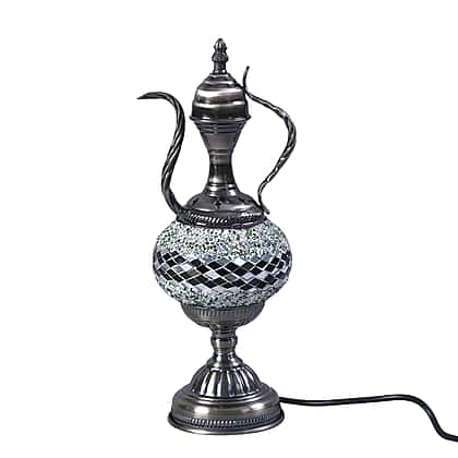 Handmade Wine Pot Turkish Mosaic Table Lamp with Bronze Base - Grey