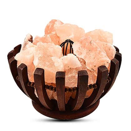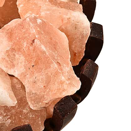 Himalayan Salt Chunks Lamp with Wooden Bowl Basket (Size 19x19x11 Cm) - Pink 4.5 Kg (9.8 Lbs)