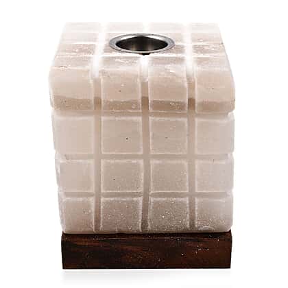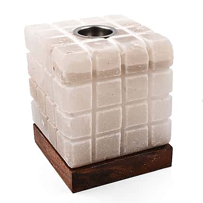 Himalayan Salt Snow White Aroma Therapy Lamp Lined Cube Shape (Size 15x12x12 cm)