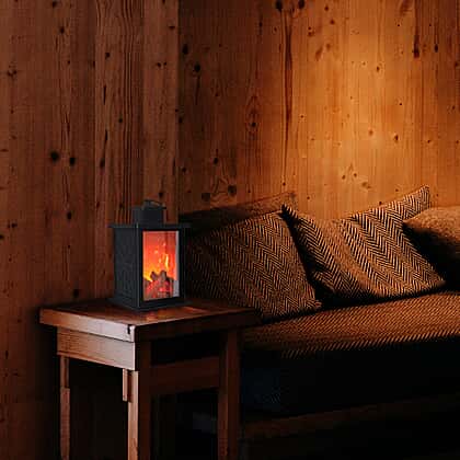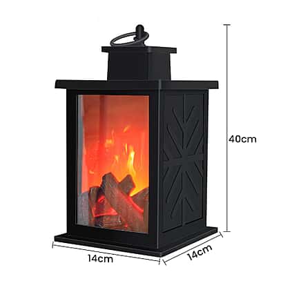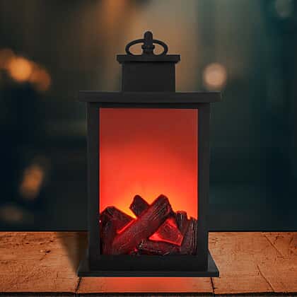 Set of 2 Fireplace Lantern with Warm Light (Requires 3AA Batteries) - Black
