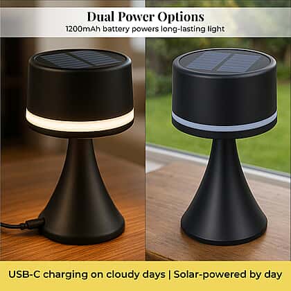 Solar Table Lamp with USB Recharge Function and 1200mah Battery - Black