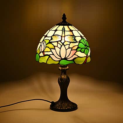 Elevate your home décor with this stunning Tiffany-Stained Glass Table Lamp featuring an exquisite lotus pattern. Handcrafted with individually cut pieces of stained glass, the hemispherical shade displays vibrant, multi-coloured artistry inspired by Art Nouveau designs. Perfect as a night light, statement piece, or art collection, this lamp adds a timeless charm to any space. Its stable alloy base, finished with a smooth coffee-coloured plating, ensures durability and elegance. Powered by a BS plug, it requires an E14 bulb (not included) to illuminate your home with warmth and sophistication.