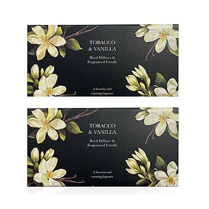 Tobacco & Vanilla Fragranced Candle and Reed Diffuser - x2 Candles x2 Diffusers