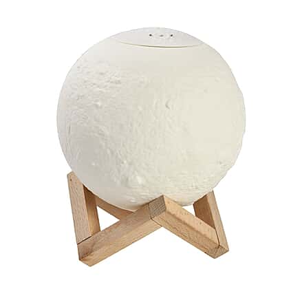 USB Moon Lamp Humidifier with Wooden Stand and 3 Colour Light Options (Size 15 Cm) - Yellow, White and Warm Yellow