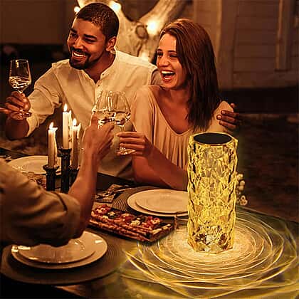 Add instant ambience to your space with this USB rechargeable table lamp featuring a diamond-cut design and 3D rose effect lighting. With 16 colour options, 3 brightness levels, and a handy remote, it’s perfect for creating a warm, romantic glow wherever you place it. Made from polished plexiglass, it’s lightweight, cordless, and easy to move. The 800mAh battery gives up to 8 hours of light after a full charge. Ideal for bedside tables, workspaces or cosy corners, this lamp brings charm and function together in one elegant piece. Touch or remote—set the mood your way.