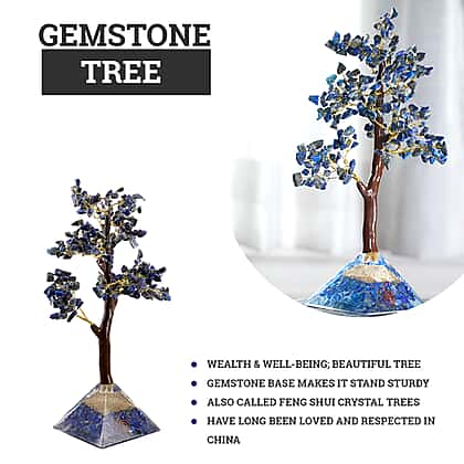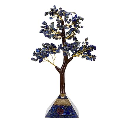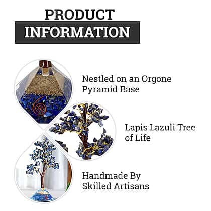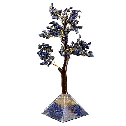 Lapis Lazuli Handmade Gemstone Tree of Life Table Decor with Orgone Pyramid Base