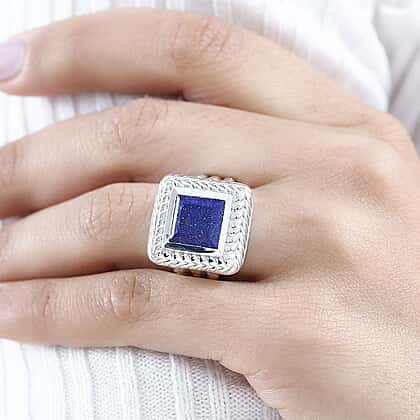 Imagine the deep, serene essence of the ocean captured within the lustrous frame of Platinum Overlay Sterling Silver. This Lapis Lazuli Solitaire Ring is a portal to the tranquil depths of the sea, where the stone's rich blue hues mirror the endless depth of a placid ocean. The gemstone with substantial weight is huge and dotted with the gentle sparkle of Natural Zircon like distant ships' lights. It's a piece that brings the calming influence of the sea into the palm of your hand, combining the minimalistic elegance of silver with the profound, captivating blue of Lapis Lazuli.