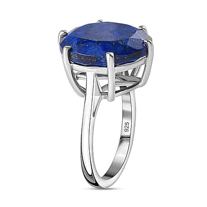 Lapis Lazuli Solitaire Ring in Platinum Overlay Sterling Silver 11.40 Ct.