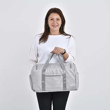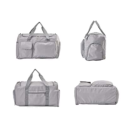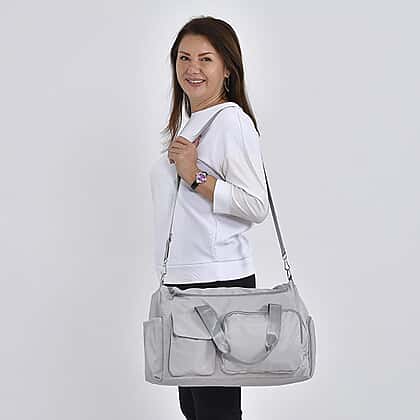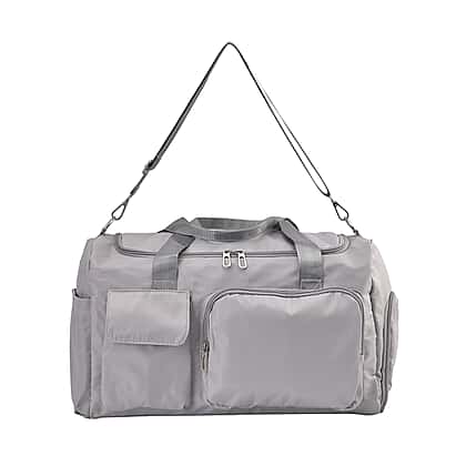 Solid Travel Bag with Shoulder Strap and Handle Drop - Grey