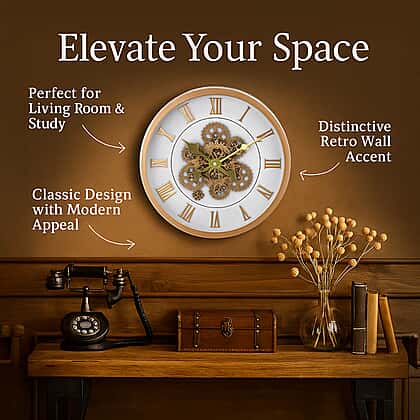 Large Vintage Turning Gears Wall Clock with Large Roman Numerals, Distinctive Retro Design (Size 45 cm)