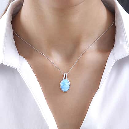 Larimar and Moissanite Pendant with Chain (Size 20) in Platinum Overlay Sterling Silver 12.04 Ct