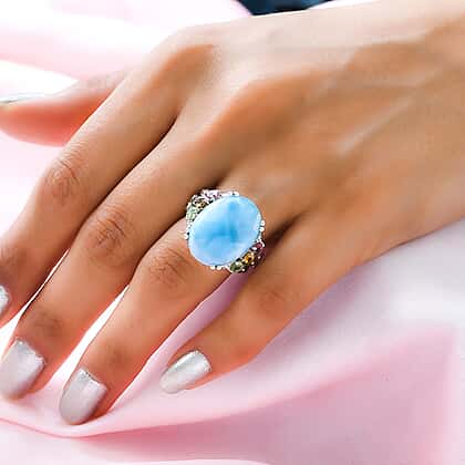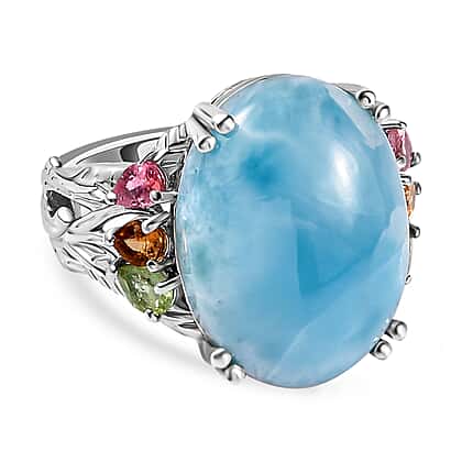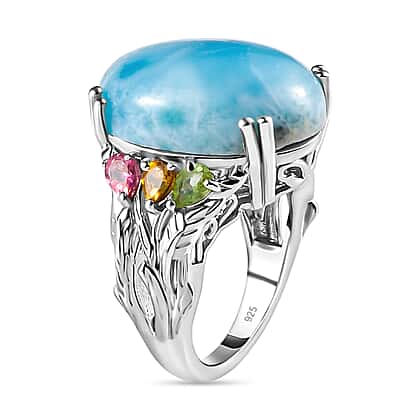 Larimar and Multi-Tourmaline Ring in Platinum Overlay Sterling Silver 18 Ct, Silver Wt. 5.60 Gms