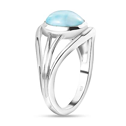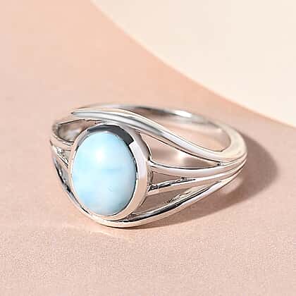 - GEMSTONE DETAILS: An oval cabochon cut Larimar has been studded onto this ring through bezl setting that makes this ring a piece for a lifetime
