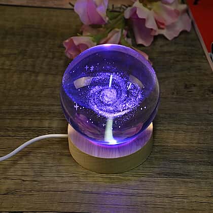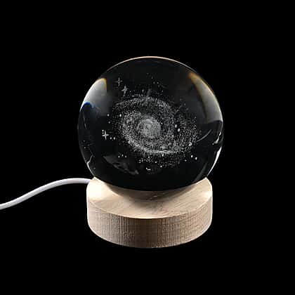 Laser Etched Galaxy Crystal Ball with Wood Base - Color Changing LED Lights