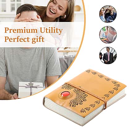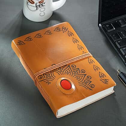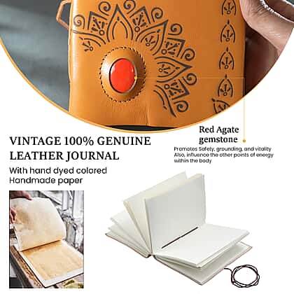 Lasercut 100% Genuine Leather Journal with Red Agate Gemstone