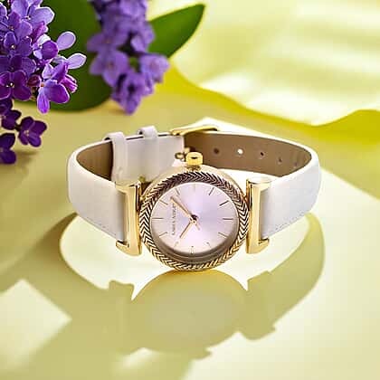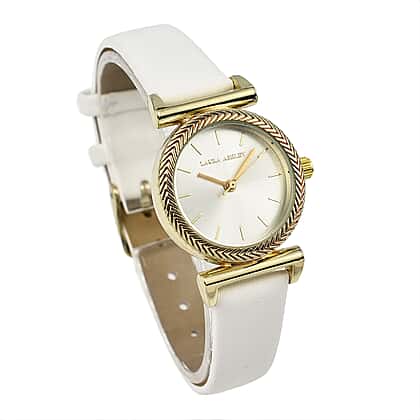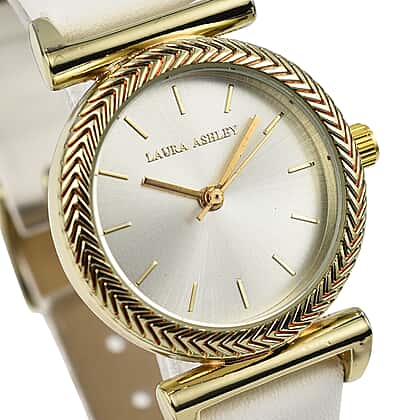 Laura Ashley Womens 27mm T Bar Fluted Bezel Vegan Leather Strap Watch - White