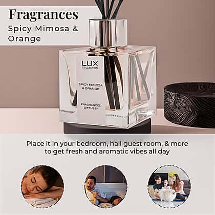 Dive into a sensory voyage with the Lux Collection's Spicy Mimosa and Orange Diffuser. Envelop your space in zesty orange notes intertwined with the intoxicating warmth of spicy mimosa. Every whiff transports you to sunlit orchards and blossoming spring mornings. Designed for those with discerning tastes, this diffuser is more than a scent—it’s an atmosphere.