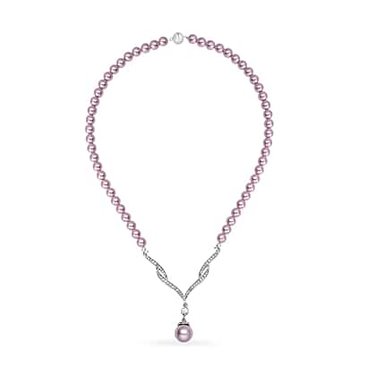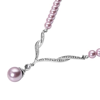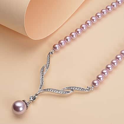 Lavender Color Shell Pearl and White Crystal Necklace