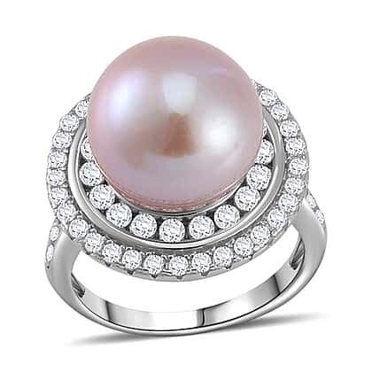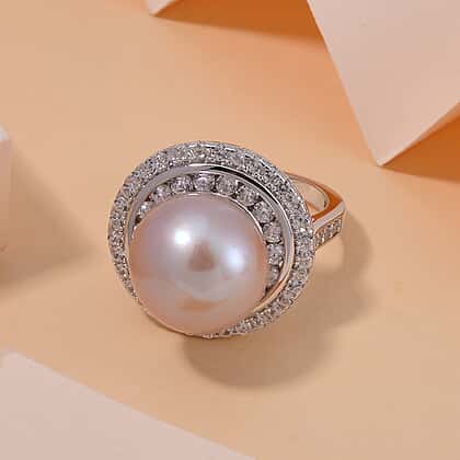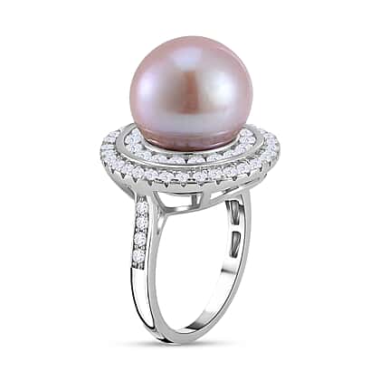 Lavender Pearl & Natural Zircon Ring in Rhodium Overlay Sterling Silver 9.74 Ct.