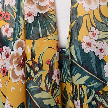- PATTERN: This mustard and green colour of kimono has come in leaf and floral print pattern on it establishes a fantastic look