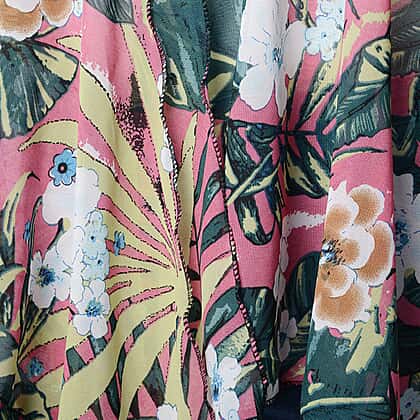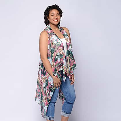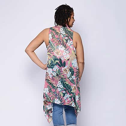 Leaf & Floral Print Sleeveless Kimono in Pink and Green (Size 43x90cm)