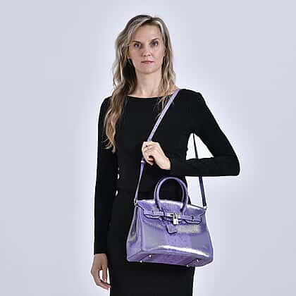 Designer Inspired - 100% Genuine Leather Snakeskin Pattern Crossbody Bag - Purple