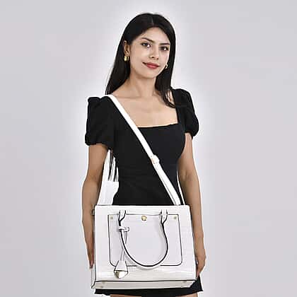 Leather Look Crocodile Crossbody Bag (Size 35x12x25 cm) - White