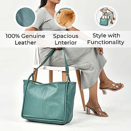 Leather Patterned Shoulder Bag (Size 36x17x30 cm) - Turquoise & Black