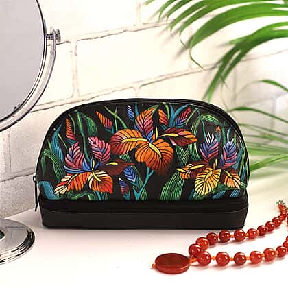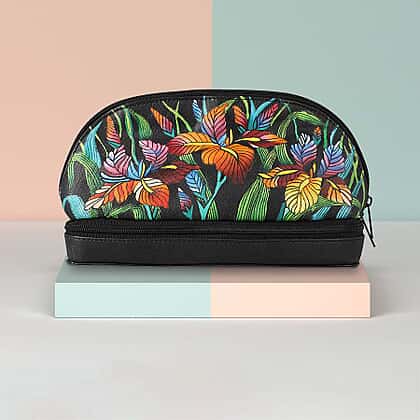 Portable Hand Printed Lily Theme Jewellery Organiser Jewellery Storage for Necklace, Earrings, Bracelets, Watches and Accessories for Women's and Girl's- Black