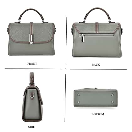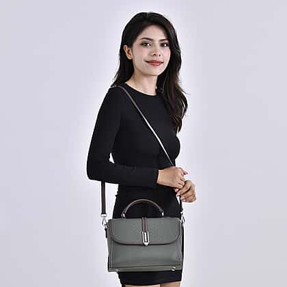 - Top handles and adjustable crossbody strap.