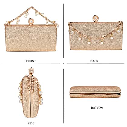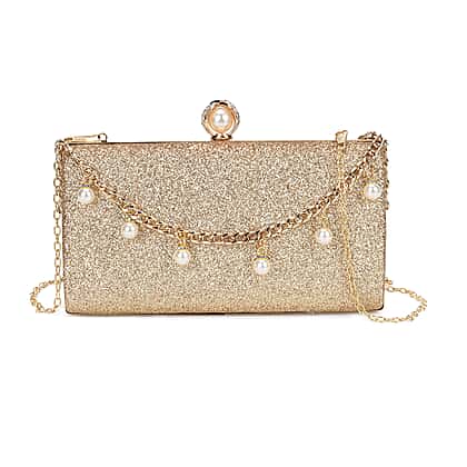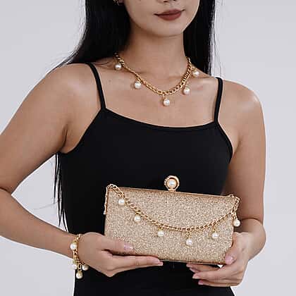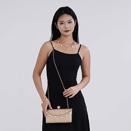 Leatherette Clutch Bag with Necklace & Bracelet (Size 22x12x4 cm) - Gold