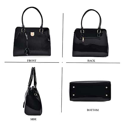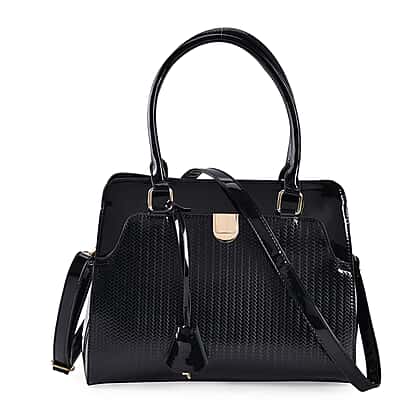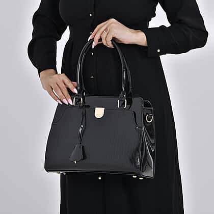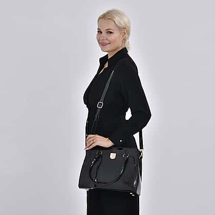 Leatherette Crossbody Bag with Dual Handle Drop & Adjustable Shoulder Strap - Black