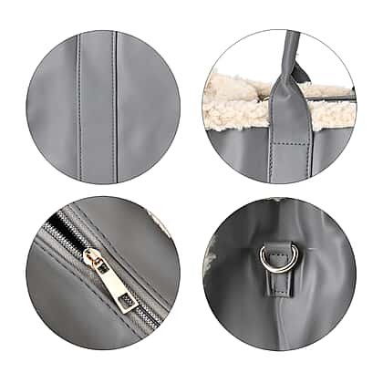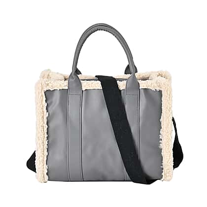 Leatherette Crossbody Bag with Exterior Zipped Pocket - Shoulder Strap - Grey - White