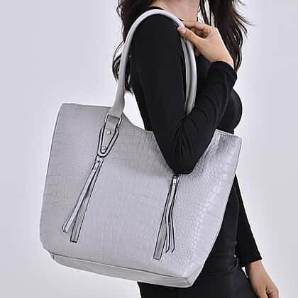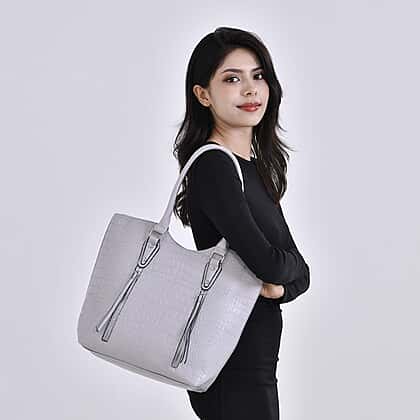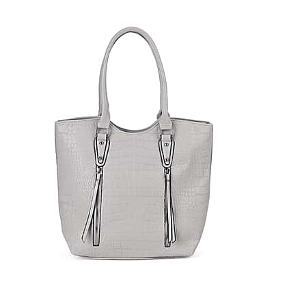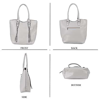 Leatherette Embossed Crocodile Pattern Tote Bag with Handle Drop - Grey