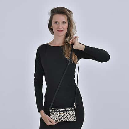 Add a bold touch to your outfit with this gold leopard-pattern leatherette crossbody bag, perfect for keeping your essentials secure in standout style. Designed for everyday ease, it features three zipped exterior pockets, a smooth polyester lining, and a sleek, compact profile measuring 8.7x4.7 inches. The 51-inch adjustable shoulder strap offers comfortable wear across the body, freeing your hands while on the go. Whether heading out for errands or a weekend brunch, this bag balances functionality and flair effortlessly. With its stylish rose pattern detail and practical compartments, it’s a must-have accessory that doesn’t compromise on convenience or looks.