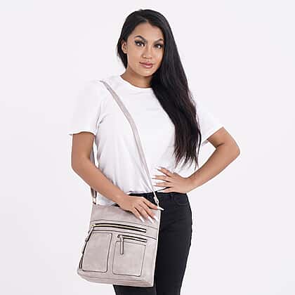 Leatherette Multi Compartment Crossbody Bag - Grey