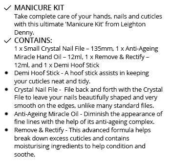 Leighton Denny - Manicure Kit (Incl. Small Crystal Nail File, Anti-Ageing Miracle Hand Oil - 12ml, Remove & Rectify - 12ml & Demi Hoof Stick)