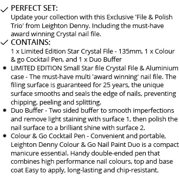 Leighton Denny- File & Polish Trio (Incl. Limited Edition Mall Star Crystal File & Aluminium Case, Colour & Go Cocktail Pen & Duo Buffer)