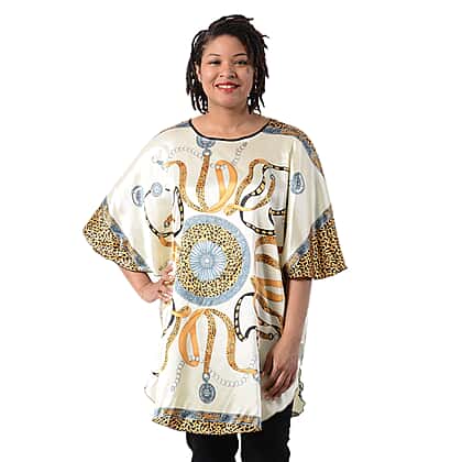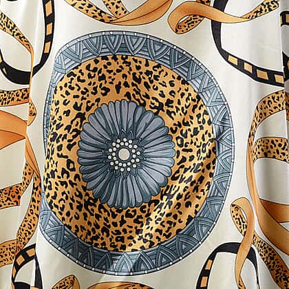 Leopard - Ribbon Pattern Kaftan (Size-110x74Cm) - Cream and Multi