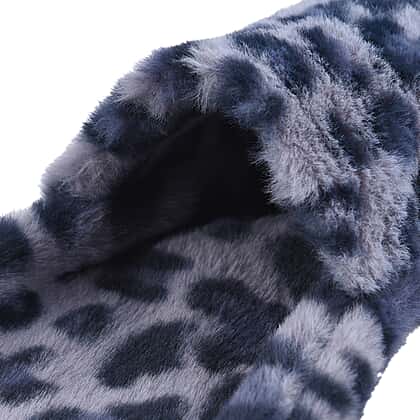 Leopard Pattern Faux Fur Hooded Scarf (Size 215x13cm) - Blue