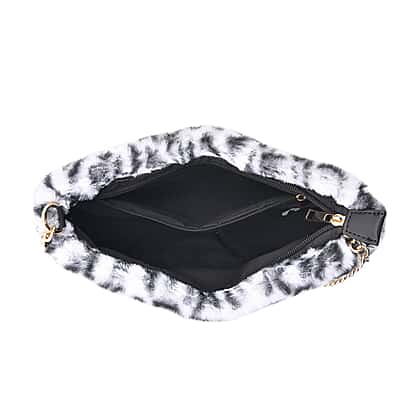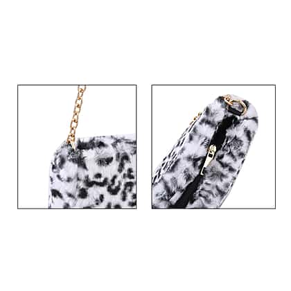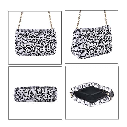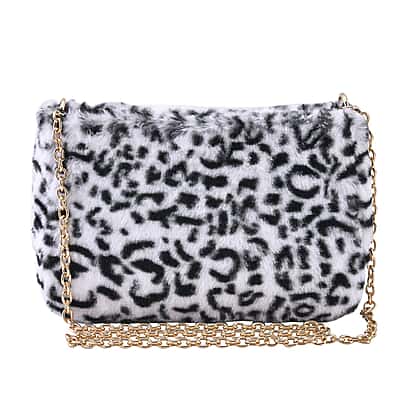 Leopard Pattern Faux Fur Shoulder Bag with Metal Chain