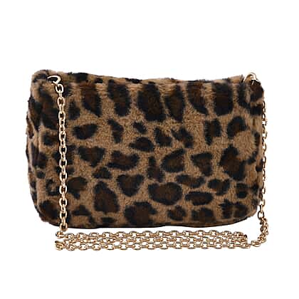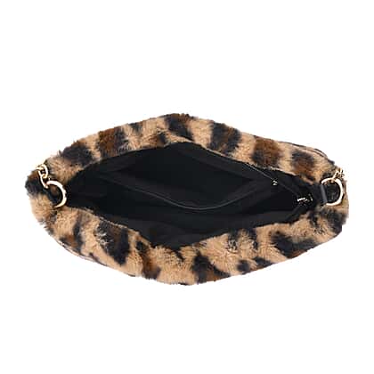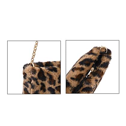 Elevate the look of your outfit with this stunning leopard pattern faux fur shoulder bag. This bag is made from polyester inner material with PU leather on the outside, giving it a faux fur look. This bag has two compartments secured with a zipper closure to keep your essential items safe and secure. It has a long metal chain so that you can carry this bag in style.