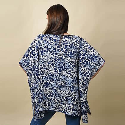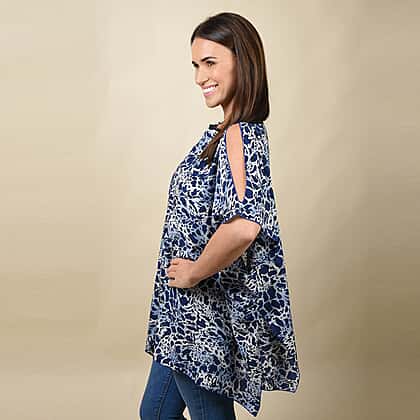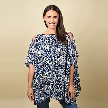 Leopard Print Blouse with Open Shoulder Design in Blue (Free Size/Length72 cm)