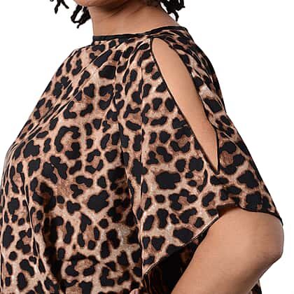 Leopard Print Blouse with Open Shoulder Design in Brown (Free Size / Length72 cm)